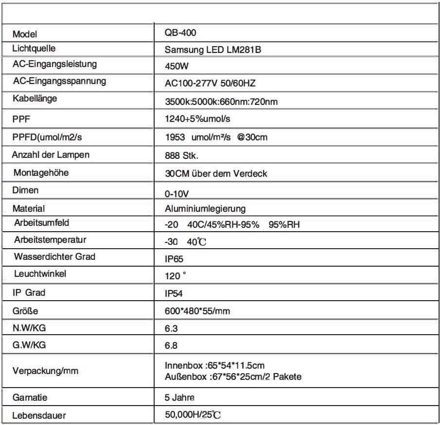 - hochwertige Samsung LEDQuantum- Lampen (LM281B)