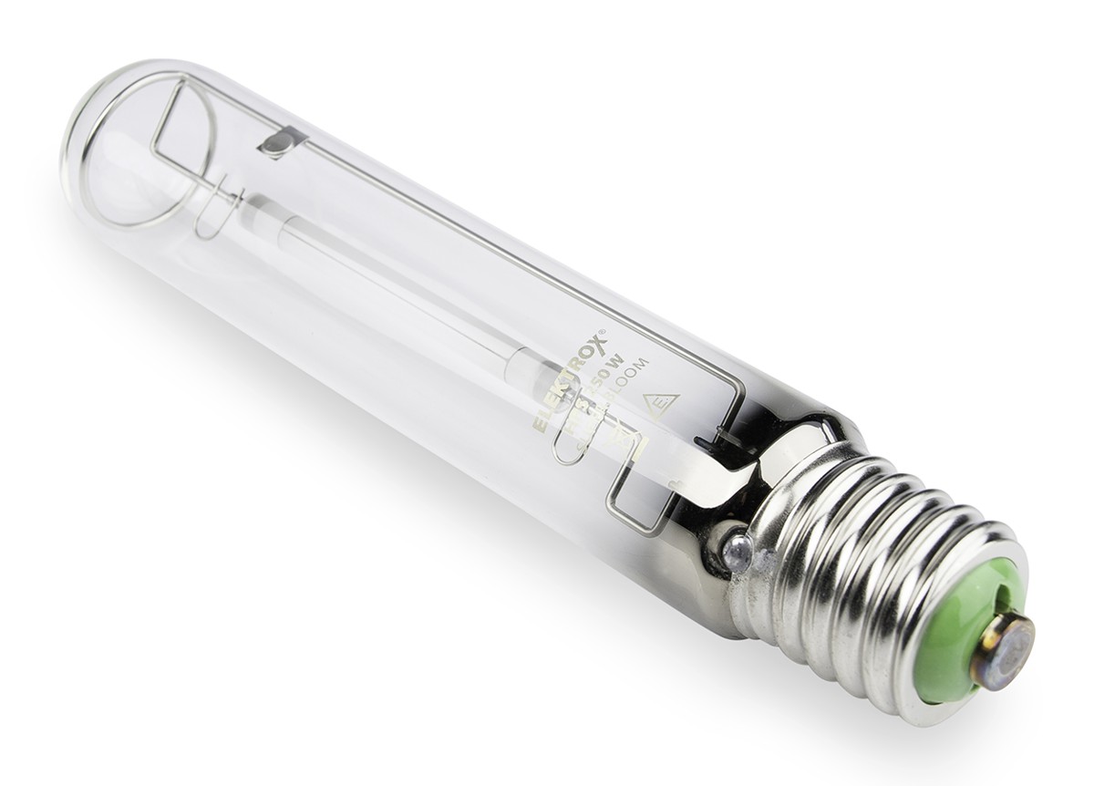 Elektrox SUPER BLOOM 250W hat eine Leistung von 250 W und eine Netzspannung von 220-240 V. Betrieben wird dieses CE-gekennzeichnete HPS/NDL-Blüteleuchtmittel von Elektrox mit der Energieklasse A+ bei einer Netzfrequenz von 50 Hz. Die SUPER BLOOM 250 W besticht durch ihre lange Betriebszeit von über 32000 h und besteht aus einem klaren T46-Kolben sowie einer E40-Fassung. Dieses Leuchtmittel besitzt eine Lichtstärke von 18000 lm und besticht mit einer Lichteffizienz von 72 lm/W. Mit seiner Farbtemperatur von 2000 K, der warmweißen Lichtfarbe und dem gelb-roten Farbspektrum unterstützt das Qualitäts-Leuchtmittel von Elektrox besonders die Blütephase von Pflanzen.